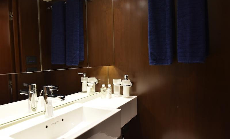 Twin Caterpillar C18 (930hp each) • 2 cabins accommodating 6 guests • Onan 13.5kW generator • Teak laid decks • Bowthruster • Telescopic passerelle • Flybridge wetbar with BBQ grill • Dual station electric trim tabs • Dual station navigation equipment • Combination washer/dryer • Icemaker